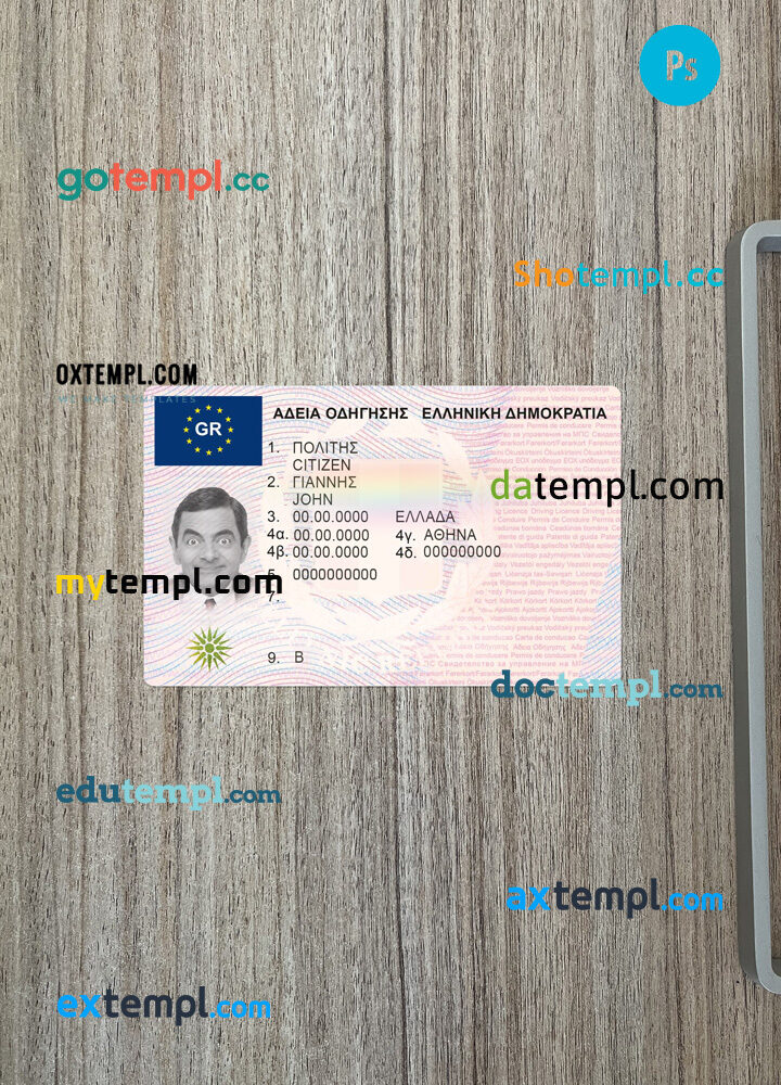 Greece driving license editable PSD files, scan look and photo-realistic look, 2 in 1, version 2