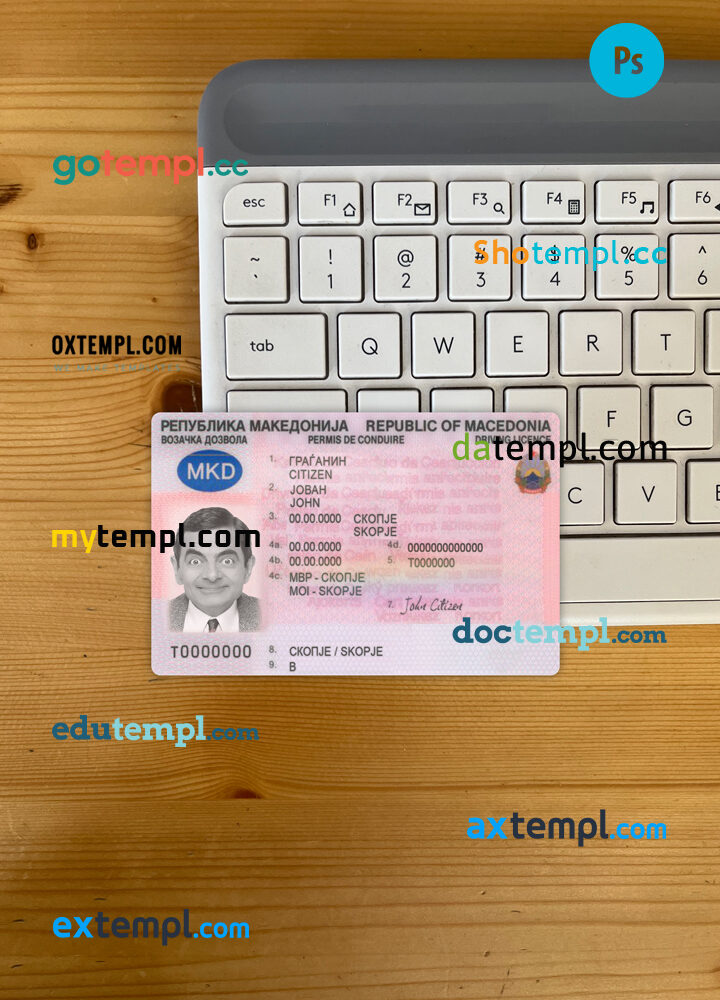 Macedonia driving license editable PSD files, scan look and photo-realistic look, 2 in 1,