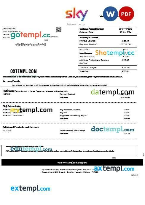 UNITED KINGDOM UTILITY SMART business utility bill Word and PDF template
